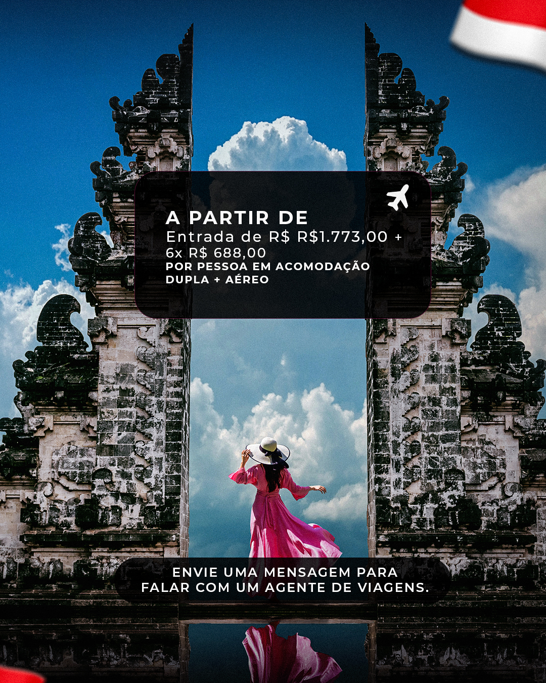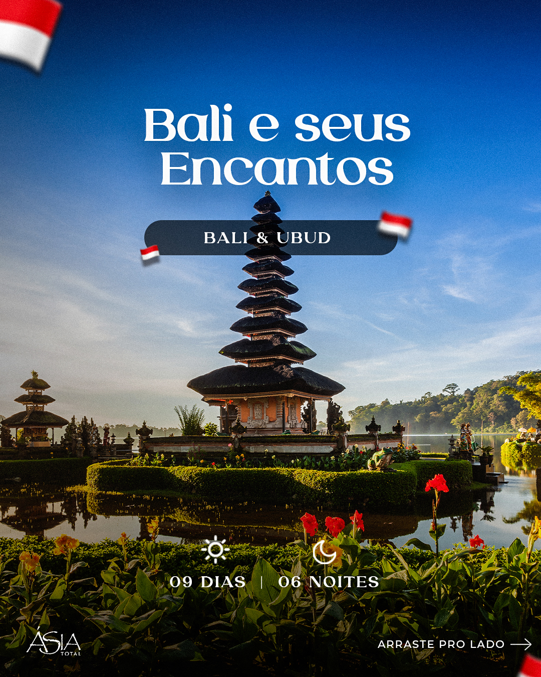 ✨ Uma viagem que combina espiritualidade, natureza exuberante, praias paradisíacas e cultura vibrante. Conhecida como a “Ilha dos Deuses”, Bali encanta com arrozais em terraços, templos milenares, dança, arte e hospitalidade inigualável.
