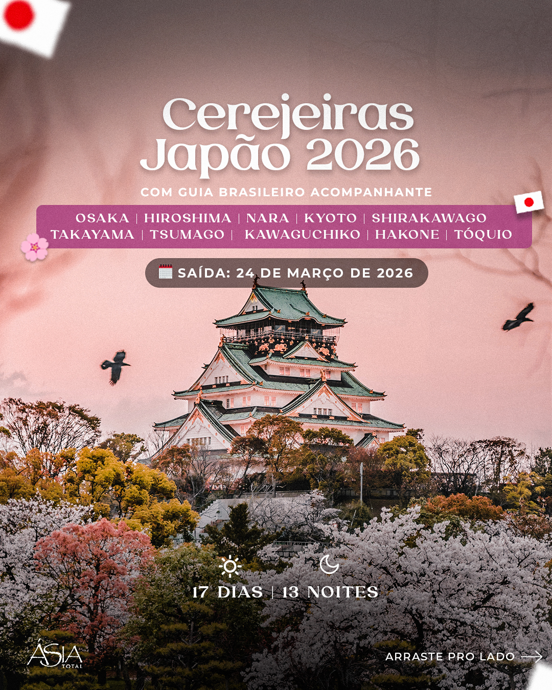 ✨ Uma jornada exclusiva pela Terra do Sol Nascente no período mais encantador do ano: a floração das cerejeiras (sakura). Um roteiro completo que une história milenar, tradição, vilarejos preservados e a modernidade vibrante de Tokyo, acompanhado por guia brasileiro.