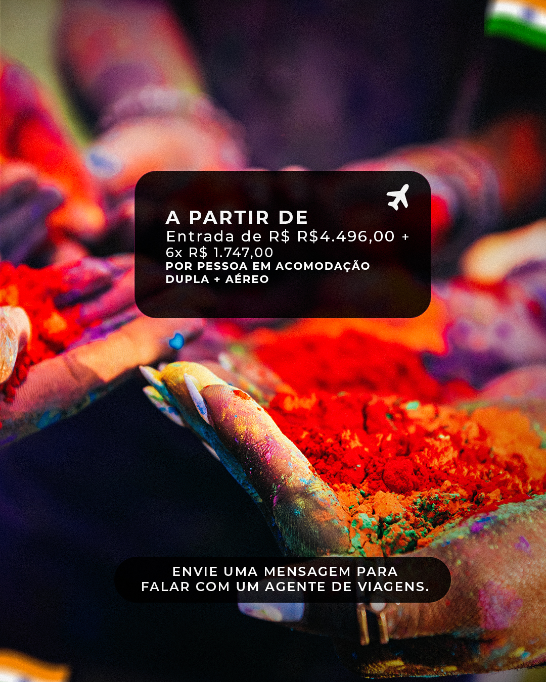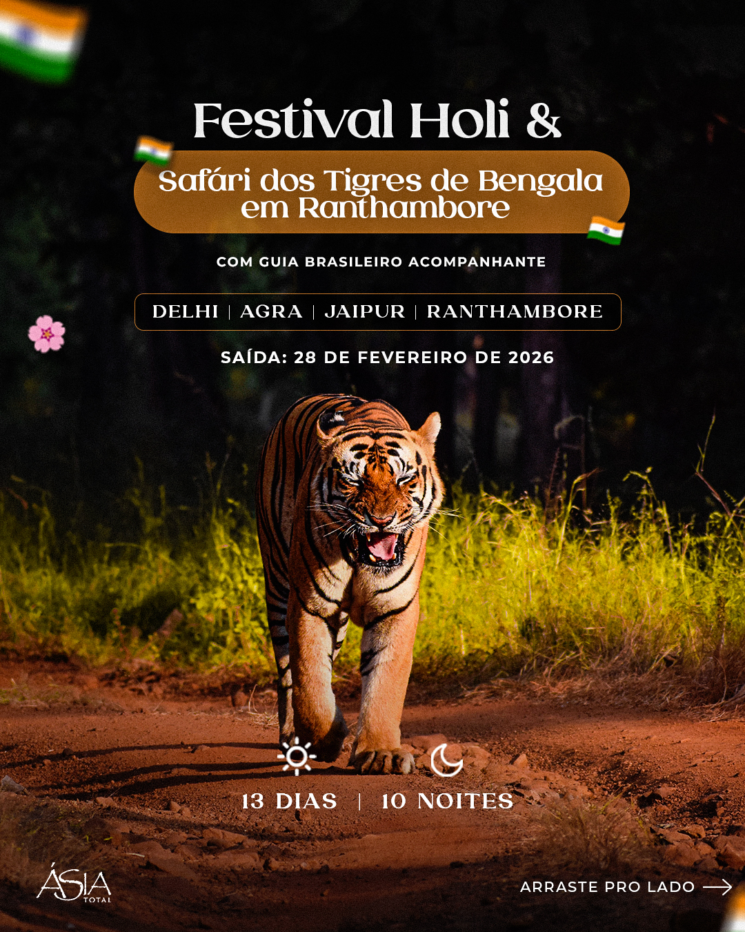 ✨ Uma viagem única que une a espiritualidade e a tradição do Holi – o vibrante Festival das Cores – com a emoção de um safári em busca do majestoso Tigre de Bengala em Ranthambore, além do esplendor histórico de Delhi, Jaipur e Agra.