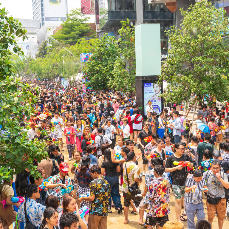 Bangkok oferece diversão segura para famílias com crianças pequenas, graças às novas áreas de lazer aquáticas com controle de multidões e sombra. No centralwOrld, a festa mistura música, areia e um toboágua gigante; já a Siam Square mantém um ambiente animado, porém controlado, com espuma, música ao vivo e a política de “proibido álcool e pó”, ideal para jovens e crianças.